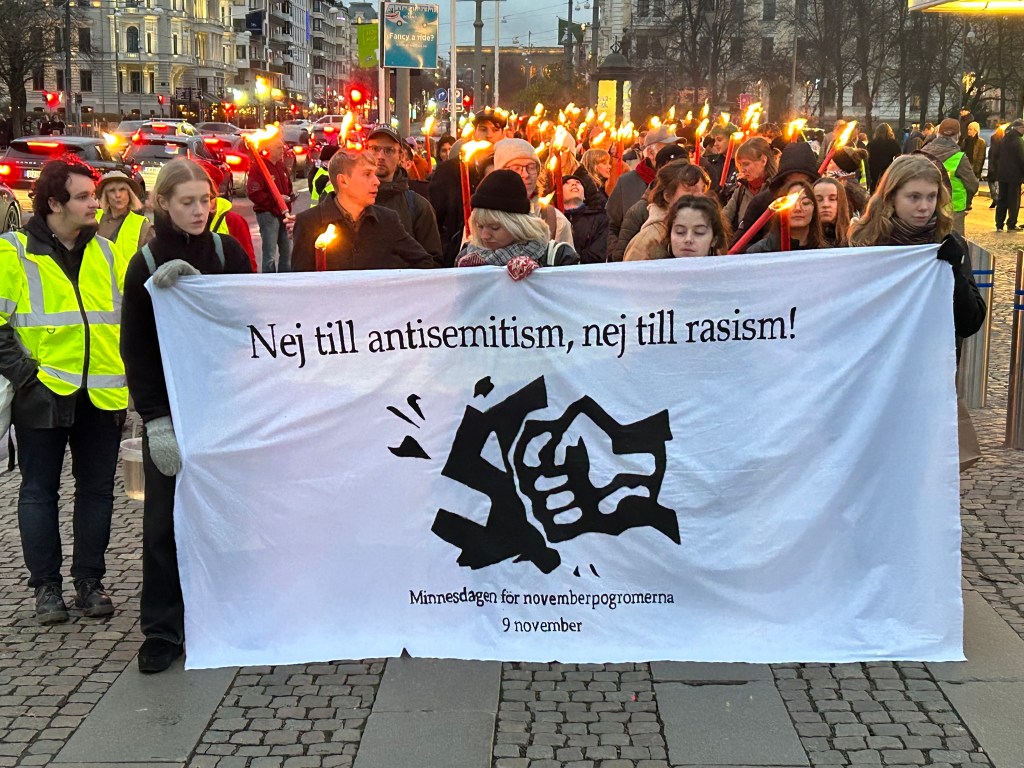 En manifestation i Göteborg under Kristallnatten den 9 november. Bild: Gus Kaage