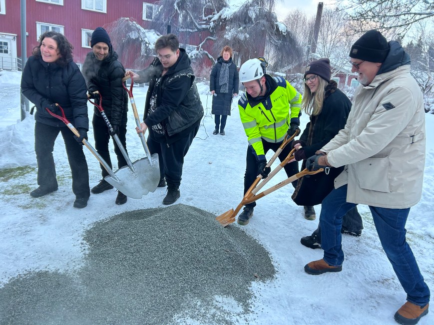 Första spadtaget för nya estethuset på Fristads folkhögskola utanför Borås. Bild: Gus Kaage 260120. 9 januari togs första spadtaget för en utbyggnad av Fristads folkhögskola utanför Borås. Västra Götalandsregionen har investerat 113 miljoner kronor i ett nytt estethus, upprustning av äldre lokaler och utemiljöer. Sommaren 2027 står det nya estethuset klart. Bakom satsningen står Västra Götalandsregionen. Mats Pilhem är ordförande för Västra Götalandsregionens folkhögskolor. Bild …